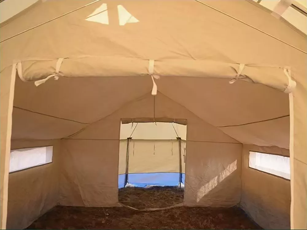 ຮູບແບບ tent ຜູ້ອົບພະຍົບມະນຸດສະທໍາມາດຕະຖານແມ່ນເຫມາະສົມສໍາລັບຄອບຄົວຂອງ 3-5 ປະຊາຊົນ. ຂະໜາດຂອງ tent ຊັ້ນນອກແມ່ນປະມານ 6.5m × 4.0m, ມີພື້ນທີ່ໃຊ້ສອຍປະມານ 26㎡ ແລະ ສູງກາງ 2.2m. ການຈັດວາງພື້ນທີ່ພາຍໃນແມ່ນສົມເຫດສົມຜົນ, ອໍານວຍຄວາມສະດວກໃນການດໍາລົງຊີວິດແລະການເກັບຮັກສາອຸປະກອນການ. tent ແມ່ນເຫມາະສົມສໍາລັບອຸນຫະພູມຕັ້ງແຕ່ -5 ℃ເຖິງ 40 ℃, ສາມາດຮັບມືກັບສະພາບອາກາດຕ່າງໆ.